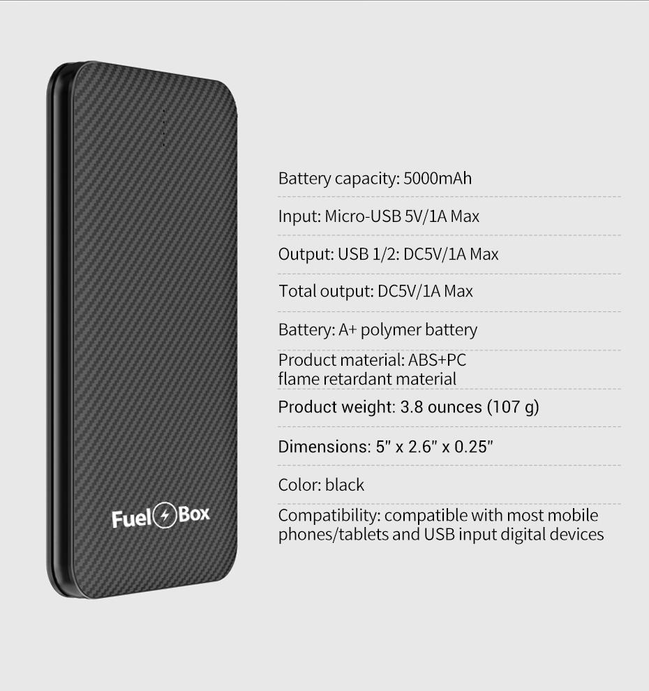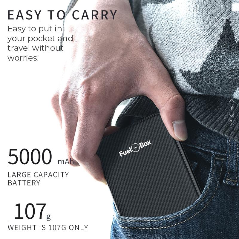 The FuelBox Orbit is a super thin, pocket-friendly mobile battery with 5,000 mAh of power built-in. Built with an ergonomic design and beautiful carbon fiber finish, the FuelBox Orbit is sleek and feels comfortable in your pocket,...